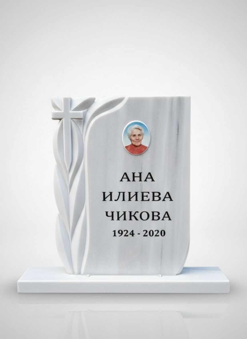 Паметник Ани – Мрамор PA067 е плоча от мрамор, с полирана повърхност и елегантна форма. Подходящ е за единично гробно място и позволява персонализация с надпис, снимка, символи и орнаменти според желанието на семейството. Предлагаме изработка и монтаж, като можете да се свържете с нас за размери, срок и оферта.